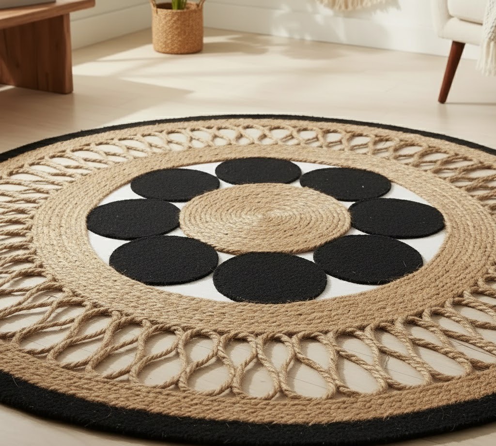 Esta alfombra redonda de yute aporta un toque cálido y acogedor a cualquier ambiente, combinando estilo rústico y elegancia natural. Perfecta para salas, dormitorios o rincones especiales, su diseño versátil y resistente convierte cualquier espacio en un lugar cómodo y armonioso, ideal para quienes buscan belleza y funcionalidad en un solo detalle.