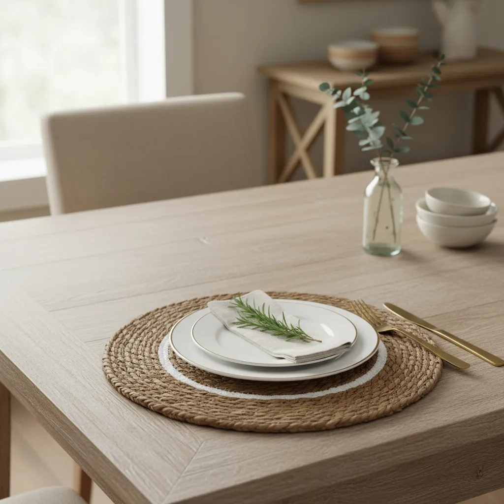 Este individual aporta a tu mesa un equilibrio perfecto entre calidez rústica y elegancia moderna. Su combinación de yute natural con la línea blanca decorativa crea un toque sofisticado sin perder la sensación acogedora, ideal para el uso diario o momentos especiales. Protege la superficie de la mesa mientras transforma cada comida en una experiencia con estilo y personalidad.