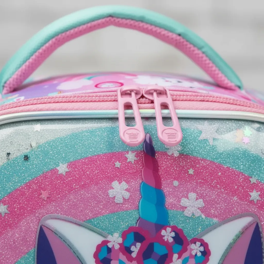 Con esta lunchera, las viandas diarias se vuelven más simples: mantiene la temperatura, es liviana y fácil de limpiar. El diseño de gatitos unicornio suma un toque encantador sin perder funcionalidad, ideal para escuela, salidas o actividades. Compacta, cómoda y pensada para acompañar cada día con color.