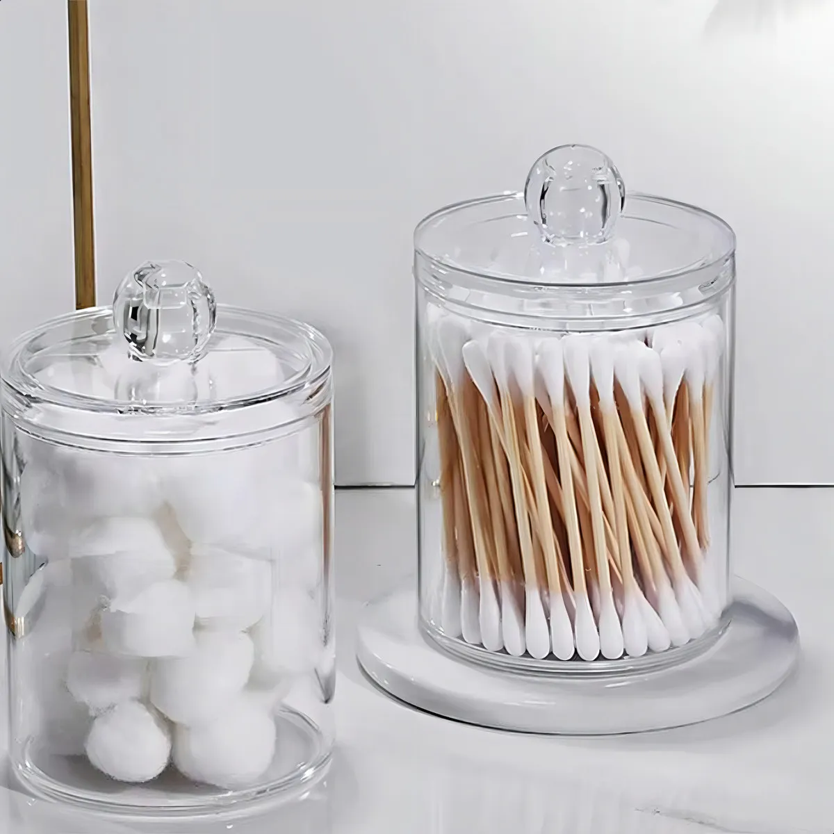 Este organizador mantiene todo prolijo y protegido gracias a su tapa hermética y su estructura transparente que permite ver el contenido al instante. Su tamaño reducido lo hace perfecto para baños pequeños o vanitorys con poco espacio, aportando orden sin perder estilo. Ideal para hisopos, discos de algodón u otros accesorios pequeños.