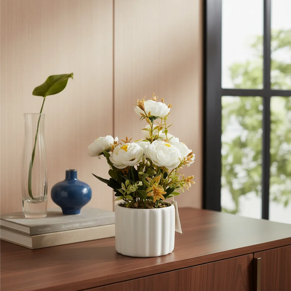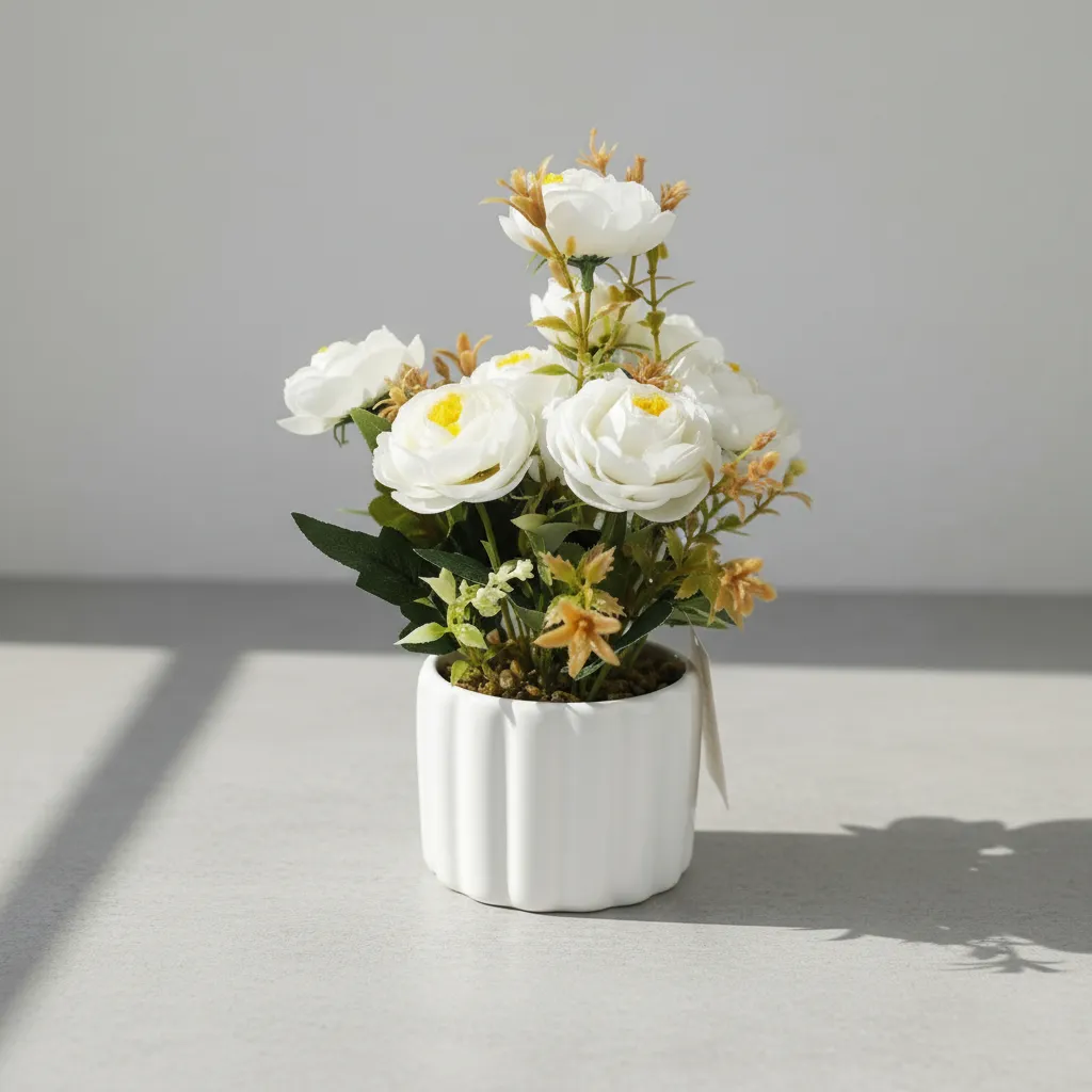 Rosas Blancas Decorativas C/maceta De Plastico ROSE