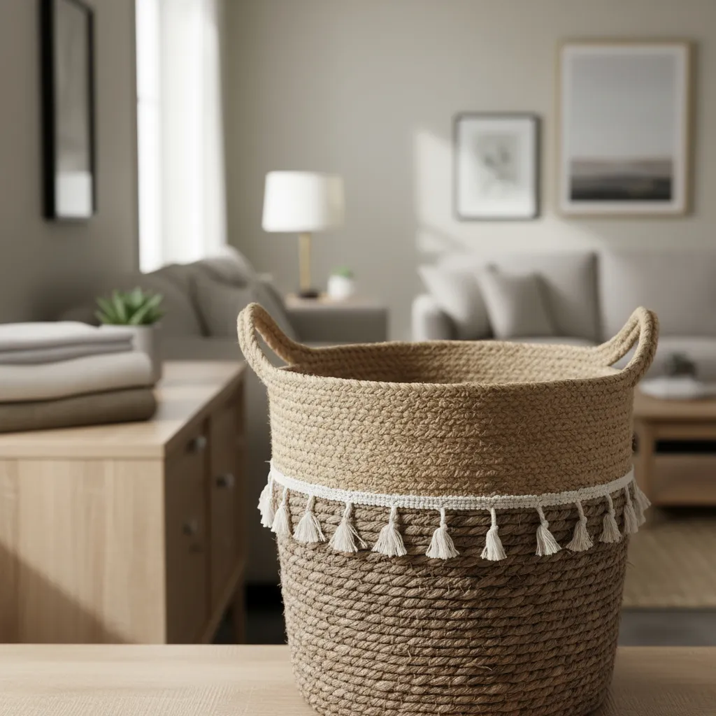 Mantener en un lugar seco para preservar la forma y durabilidad del yute.