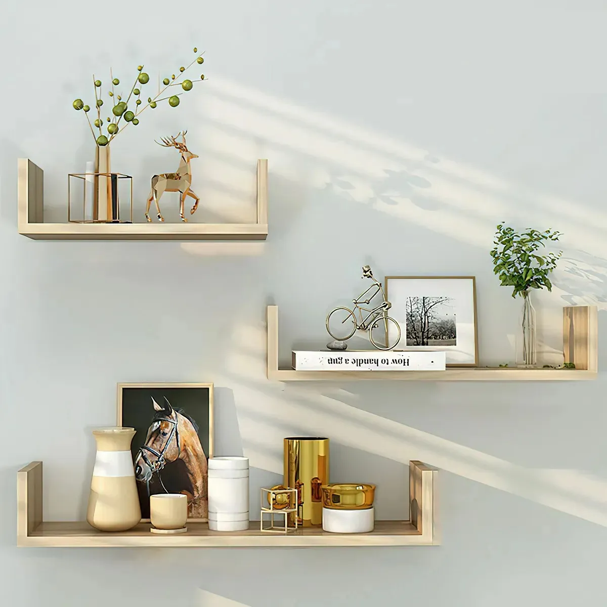 • Set de 3 estantes flotantes de estilo nórdico.