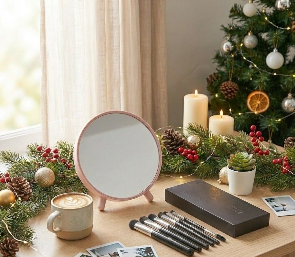 Este pack es ese detalle lindo y práctico que siempre suma. El espejo redondo de mesa brinda una vista clara sin ocupar espacio, se mantiene firme gracias a su base con patitas y tiene un compartimento trasero perfecto para guardar pequeños accesorios. Ideal para baño, dormitorio o escritorio.